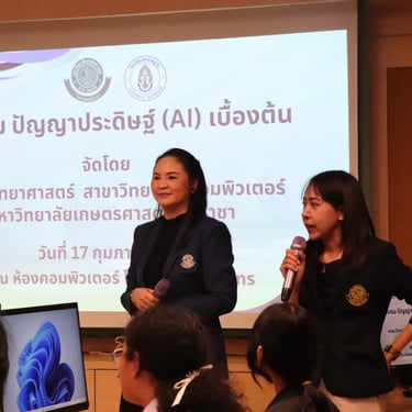 ร่วมบรรยายให้กับนักเรียน เพื่อสร้างความเข้าใจพื้นฐานด้าน AI ควบคู่กับการฝึกทักษะเชิงปฏิบัติ เช่น การจําแนกภาพ (Image Classification) และการตรวจจับท่าทาง (Pose Detection)
