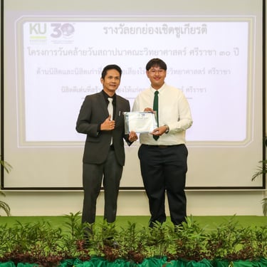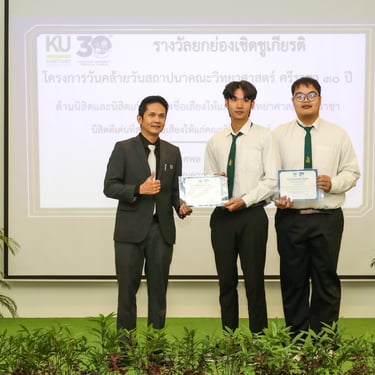 ขอแสดงความยินดีกับนิสิตภาควิชาฯ ได้รับรางวัลยกย่องเชิดชูเกียรติ วันสถาปนาคณะวิทยาศาสตร์ ศรีราชา มหาวิทยาลัยเกษตรศาสตร์